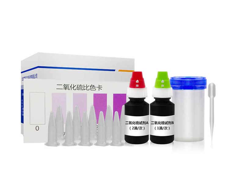 在1.5ml離心管中先滴加2滴檢測液A,1滴檢測液B,上下?lián)u動,混勻;然后加入1ml樣品液,立即蓋塞混勻。放置5分鐘觀察顏色變化,并與色卡對照,得出樣品中二氧化硫或亞硫酸鹽是否超標的信息。