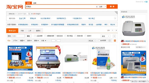 接下來點擊“農(nóng)殘儀”關(guān)鍵詞進入天貓網(wǎng)頁搜索頁面,就會出現(xiàn)不同類型和價目的農(nóng)殘儀。首先映入眼簾的是智云達ZYD-NB便攜式水果蔬菜農(nóng)藥殘留速測儀,還有6通道和12通道農(nóng)藥殘留速測儀,農(nóng)藥殘留速測卡等多款智云達的代表性快檢產(chǎn)品都呈現(xiàn)在搜索頁面中,可見智云達天貓店鋪的快檢產(chǎn)品已牢牢占據(jù)淘寶熱搜排行榜搜索排名第一的優(yōu)勢,智云達店鋪在淘寶中保持快檢產(chǎn)品品牌第一是毋庸置疑的。