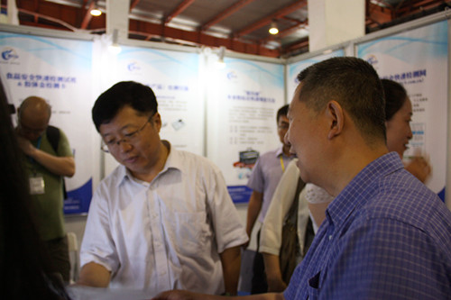 展會期間,國家食藥總局主管食品安全滕佳材局長親臨北京智云達展會現場,詢問了智云達公司獨立研發生產的 “地溝油”多參數綜合快速篩查箱使用方法、油條中鋁是否超標的快速檢測,以及了解智云達進駐天貓首家銷售快檢產品店鋪