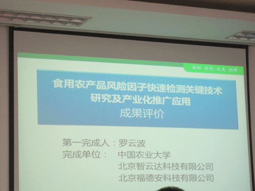 2014年8月31日上午,在中國農(nóng)業(yè)大學(xué)食品學(xué)院二樓會議如期成功舉辦了“食用農(nóng)產(chǎn)品風(fēng)險因子快速檢測關(guān)鍵技術(shù)成果評價會”。該會議由農(nóng)業(yè)部中國農(nóng)學(xué)會組織,會議評審專家組由中國工程院孫寶國院士擔(dān)任組長,由天津科技大學(xué)校長王碩擔(dān)任副組長,另有農(nóng)科院加工所等科研院所及高校的專家參加。