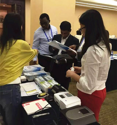 茶歇間,南南合作成員國(guó)家的官員再次被智云達(dá)的快檢產(chǎn)品吸引過(guò)來(lái),對(duì)農(nóng)業(yè)灌溉水質(zhì)的檢測(cè)產(chǎn)品需求和興趣度高。