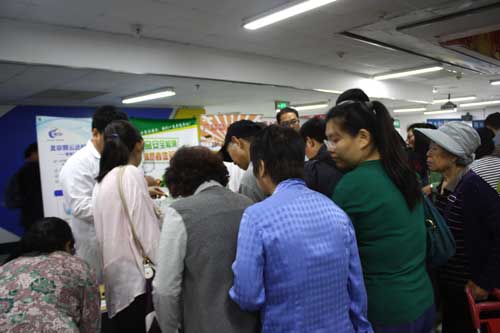 在負一層主場活動展示區(qū)人潮涌動。這個展區(qū)注重互動性、體驗性與參與性。北京智云達現(xiàn)場展示的食品安全快速檢測儀及食品安全快速檢測盒,吸引了大批圍觀群眾。