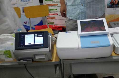 北京智云達新產品膠體金讀卡儀(左)農藥殘留速測儀(右)