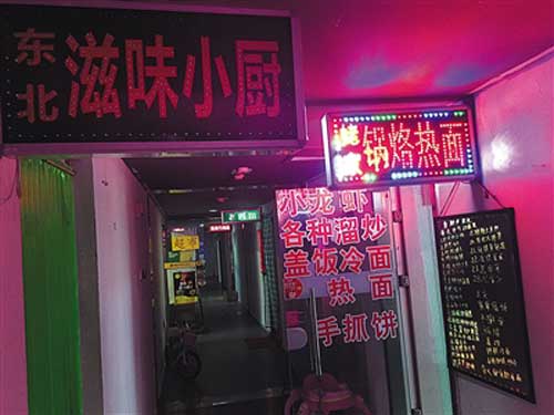 去年7月26日,像素小區(qū),一樓樓道里餐館密集。資料圖片
