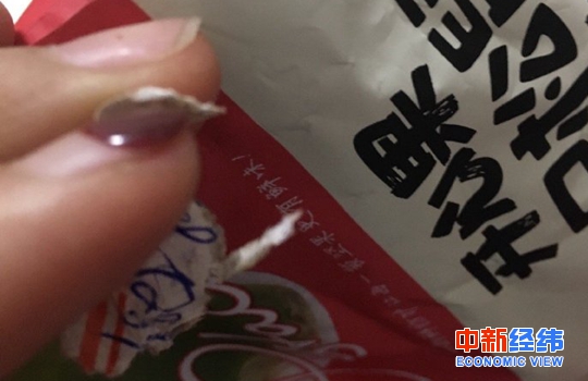 消費者徐麗(化名)告訴中新經(jīng)緯客戶端,自己3月4日在唯品會上購買了一些三只松鼠的開心果,沒曾想竟在里面吃出了一塊爛掉的標簽。