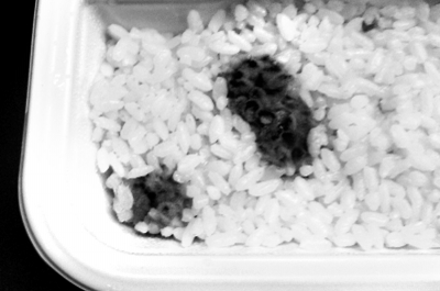 3日下午6點,該列車剛開出長沙站,11號車廂內有11位乘客購買了35元一份的紅燒牛肉盒飯。一位姓胡的乘客發現盒飯有兩處明顯的霉斑。但是盒飯的包裝是2013年10月10日,還有"常溫下貯存,保質期90天"的字樣。