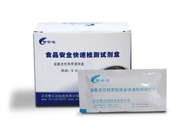 為了實現快速、實時檢測動物性產品中的“瘦肉精”殘留,快速檢測法也逐漸在生產中應用。目前,智云達公司已研發生產的瘦肉精鹽酸克倫特羅快速檢測卡,運用競爭抑制免疫層析技術檢測動物尿液、組織和飼料中是否存在鹽酸克倫特羅。
