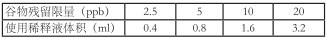 1. 谷物:任取 5g 以上有代表性樣品并粉碎過 20 目篩,準確稱取 2.0g 均勻粉碎試樣于配套離心管中,再準確加入 4ml 純凈水和 4.0ml 乙酸乙酯,將瓶塞蓋緊密封,充分振蕩 5min,4000rpm 離心 1min 得上清液,將上清液用吸管移出 2.0ml 到蒸發皿或小玻璃杯中,用電吹風吹干上清液,再根據樣品的種類按以下規定的稀釋液量,用鋁箔袋內配套吸管反復沖洗,徹底溶解杯底所有的固體,此溶解液為樣品提取液即檢測液。考慮不同樣品對黃曲霉毒素 B1 的最高含量要求,請參考下表進行用稀釋液溶解杯底固體:
