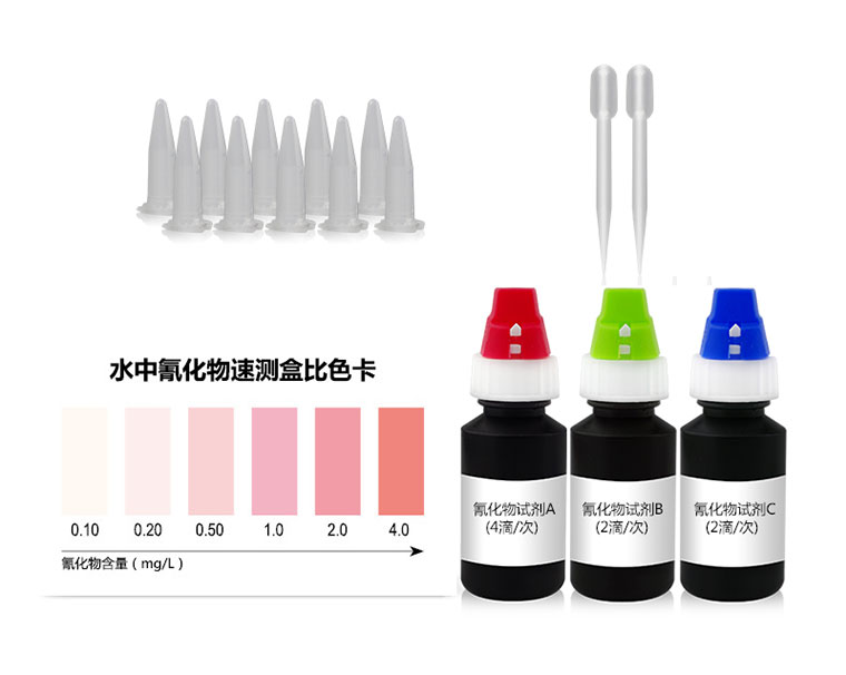 水中氰化物與檢測試劑反應生成紅色化合物,含量越高紅色越深。