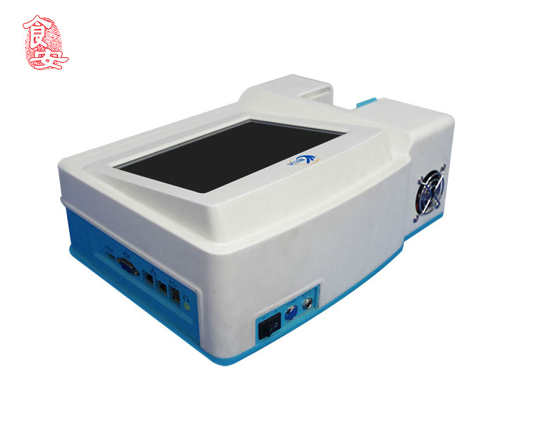 儀器預(yù)制了農(nóng)藥殘留、甲醛、吊白塊、亞硝酸鹽、二氧化硫、雙氧水、蛋白質(zhì)、余氯、色素、過氧化物酶、酸價、揮發(fā)性鹽基氮、碘含量、總酸、谷氨酸鈉、“地溝油”,等數(shù)十種檢測項目的曲線,并且可通過軟件升級的方式擴展檢測項目及功能。