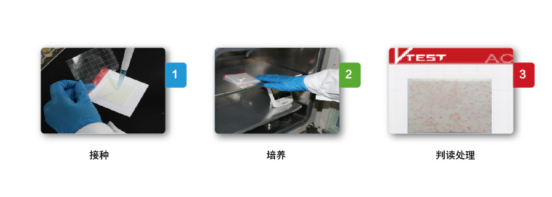V—TEST ®微生物快速檢測試紙片為預(yù)制型培養(yǎng)基系統(tǒng),由上層薄膜層、中層無紡布、下層底板組成。將特定的培養(yǎng)基和指示劑附著在載體上,通過微生物在上面生長、指示劑顯色來測定食品中的微生物。本適用于食品及原料中致病菌的測定,也可以用于食品加工環(huán)境中的致病菌的測定以及現(xiàn)場執(zhí)法等檢測。