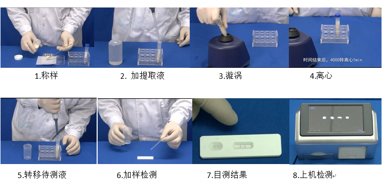 產品用途:本產品用于快速檢測糧食、谷物以及飼料中的玉米赤霉烯酮,靈敏度為100 μg/kg,整個檢測過程只需要5分鐘,適用于各類企業及檢測機構。