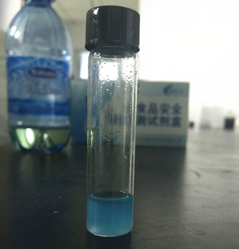 此樣品溶液較為渾濁,因此判定水分指標為陽性。三項指標中有一項不符,判定此油樣為地溝油。