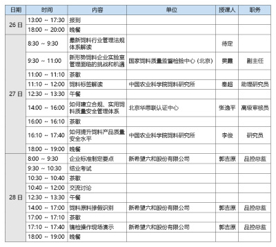 為幫助企業(yè)深入學(xué)習(xí)理解飼料法律法規(guī),了解飼料行業(yè)監(jiān)督檢查情況,使飼料行業(yè)從業(yè)者規(guī)范飼料生產(chǎn)、經(jīng)營行為,強(qiáng)化管理,滿足飼料企業(yè)對(duì)新法規(guī)和檢測實(shí)驗(yàn)室管理的需求,解決目前飼料企業(yè)工作中遇到的疑難問題,北京智云達(dá)科技股份有限公司將于2018 年12 月26 日~28 日在北京舉辦“飼料行業(yè)法律法規(guī)培訓(xùn)班”?,F(xiàn)將有關(guān)事宜通知如下: